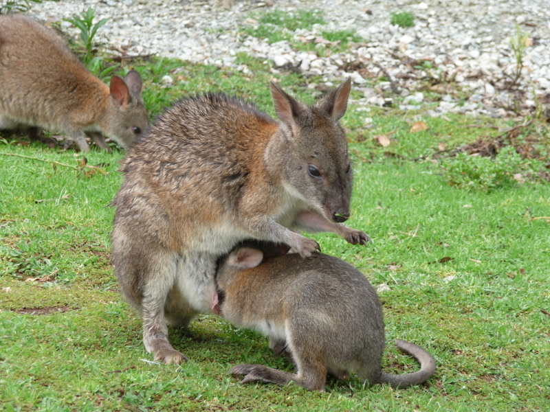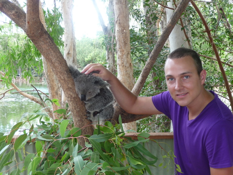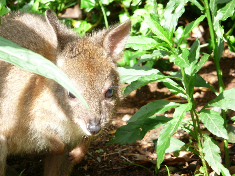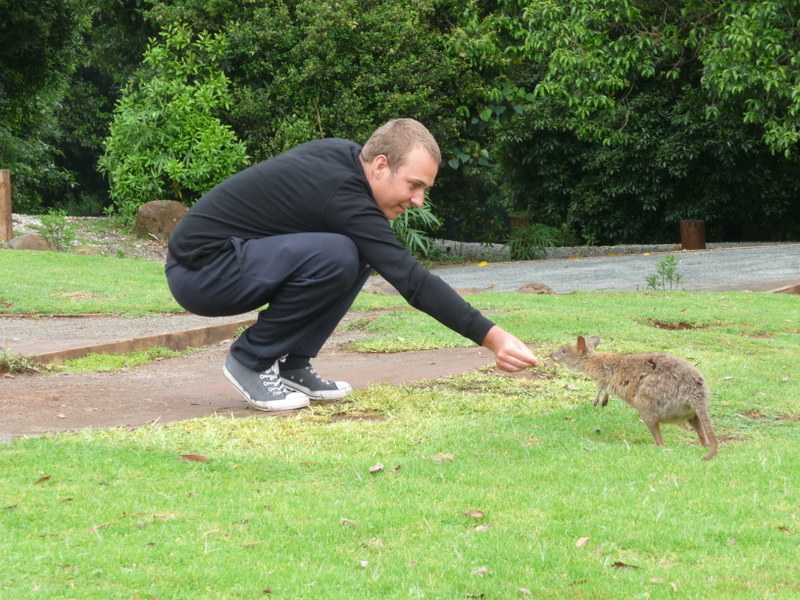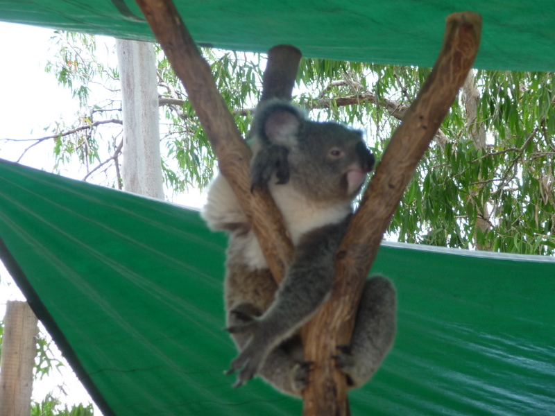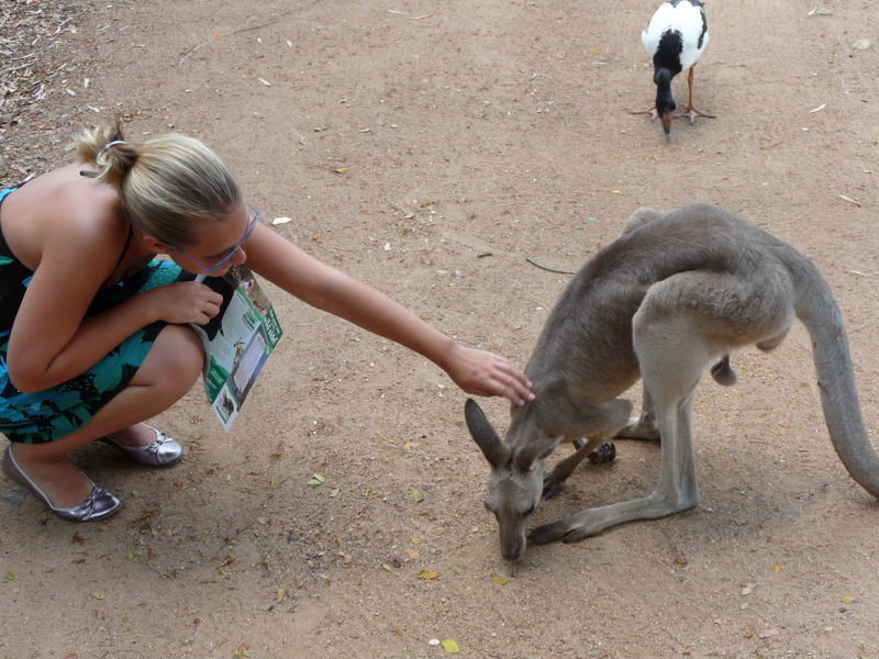 Da die fuer Australien typischen Tiere nicht so einfach ueber die Strasse laufen, sind wir in einen Zoo gegangen. Dort konnte man dann alles sehen und auch anfassen – vom borstigen Wombat, einem Kaenguruh mit extrem grossen …. und einem kuscheligen Koala. Naja die Fotos zeigen es ja. Das Foto mit dem Wombat ist extra fuer Fab 🙂