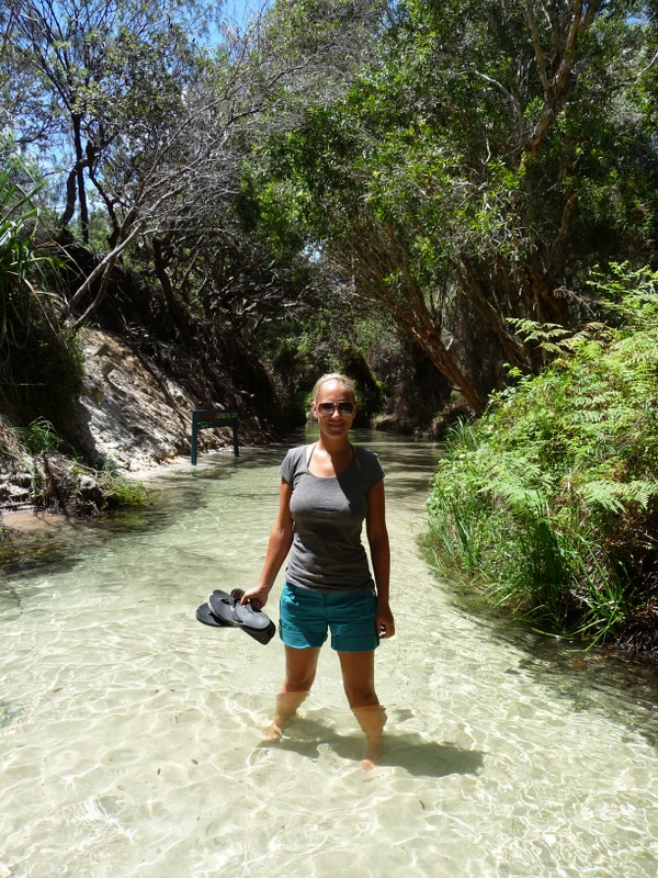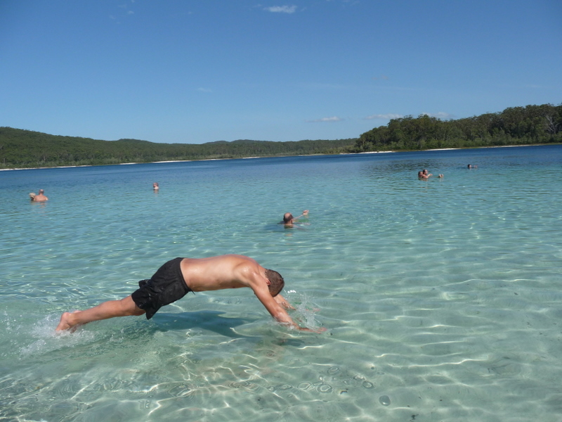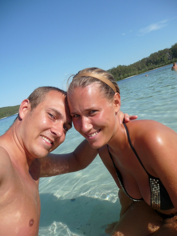Aber dann haben wir Hervey Bay erreicht. Der Ort hat uns erstmal mit Regen begruesst. Das hatten wir schon sehr lange nicht. Die Naechte (wir waren insgesamt 4 Naechte dort) haben wir in einem super tollen YHA Campground verbracht. Dort waren sehr viele andere Camper und es gab einen Aufenthaltsraum, in dem man Abends essen und trinken konnte und sich einfach vor dem Regen retten konnte. Aber das war ja nicht der Hauptgrund, warum wir nach Hervey Bay gefahren waren. Wir sind dann am vorletzten Freitag von da nach Fraser Island gefahren. Die groesste Sandinsel der Welt! Das war ein genialer Tag mit tollen Eindruecken und viel Sonnenschein. Zum Abschluss haben wir dort den Lake McKenzie besucht. Ein riesiger Frischwassersee mit traumhaftem weissen Sand.